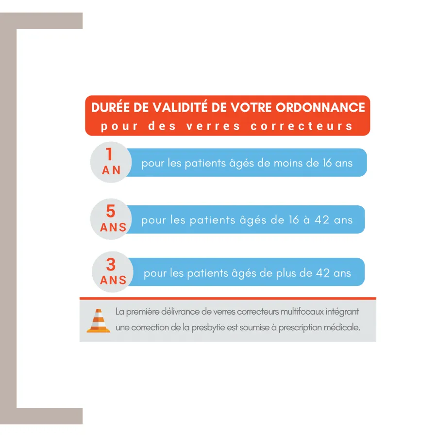 Depuis le 15 avril 2007, l’opticien est habilité à renouveler vos verres si vous êtes en possession d’une ordonnance médicale éligible de moins de 3 ans, si vous avez plus de 16 ans.