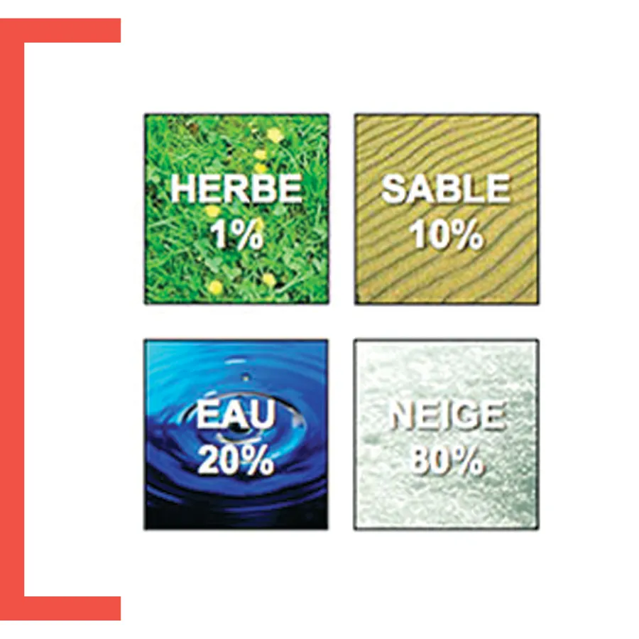 La lumière se réfléchit plus ou moins selon les surfaces. Le port de lunettes de soleil est d’autant plus important lorsque l’on est sur l’eau ou la neige :